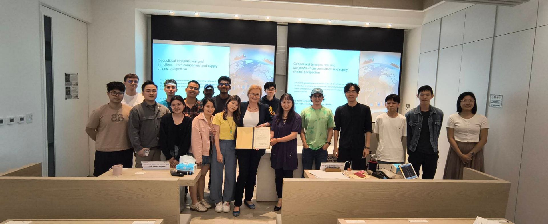 4月29日,Stępień 教授於企業管理學系吳孟紋教授授課課堂中,以「Geopolitical tensions, war and sanctions – from companies and supply chains perspective」為題發表專題演講,深入剖析地緣政治緊張、戰爭與制裁對企業營運及供應鏈穩定性的衝擊,並探討企業在高度不確定的國際環境下所採取的調適策略。
