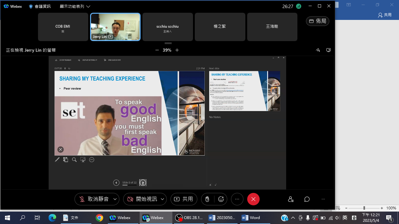 2022/05/11 EMI 教師社群活動: Professional Business Presentations in English 講者: 市場情報中心 朱師右經理 |
