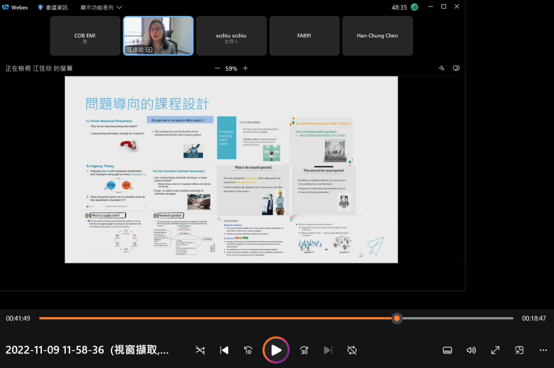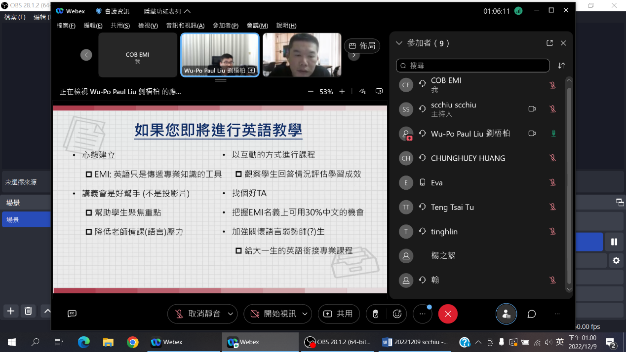 2022/12/09 女子足球 EMI社群活動 - -雙語教學經驗分享 講者: 成功大學會計學系暨財金所劉梧柏老師 |