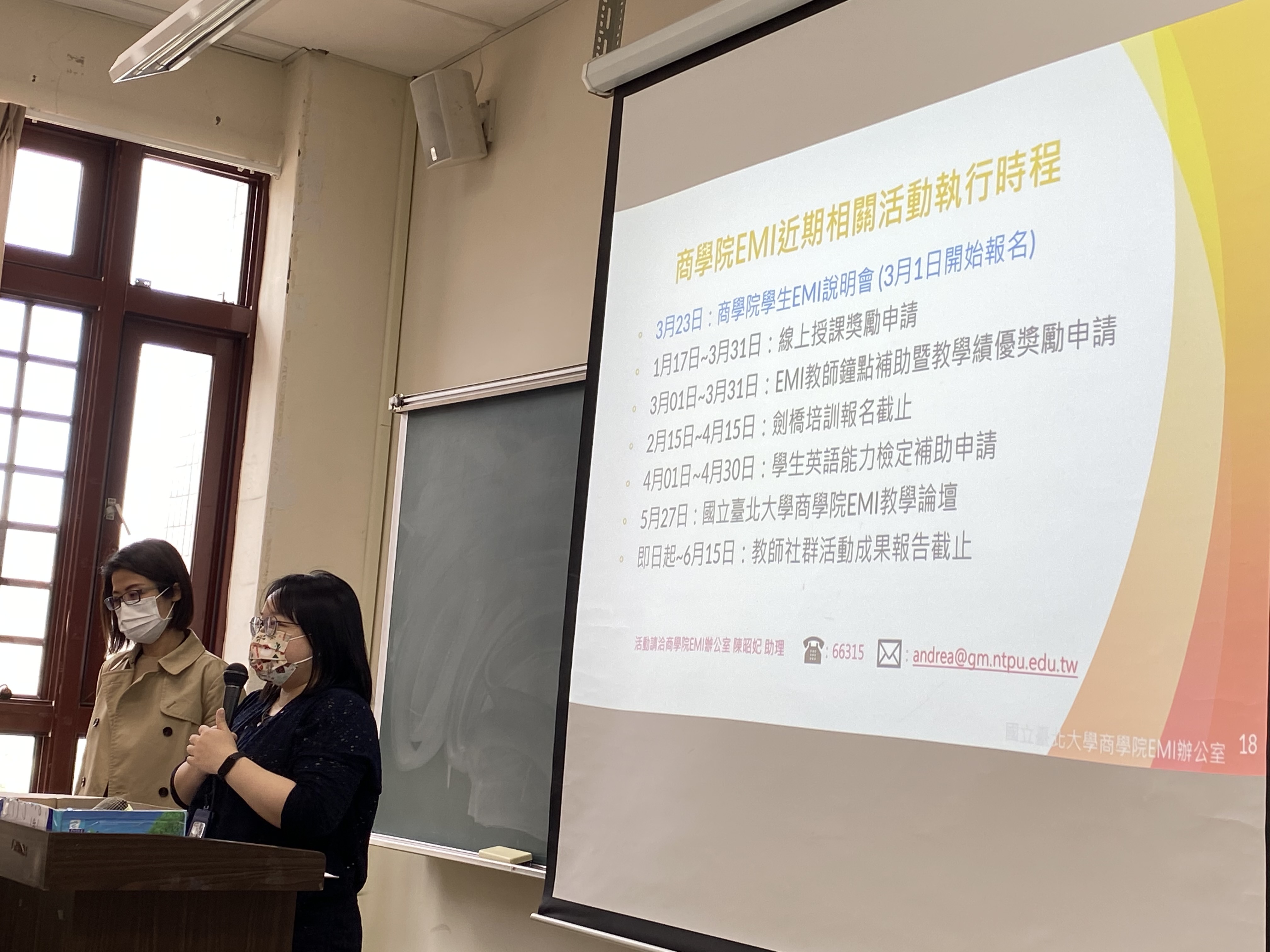2022/03/16 EMI 教師社群活動: 英語授課教學經驗分享 講者: 臺北大學企管系 吳依縈老師 |