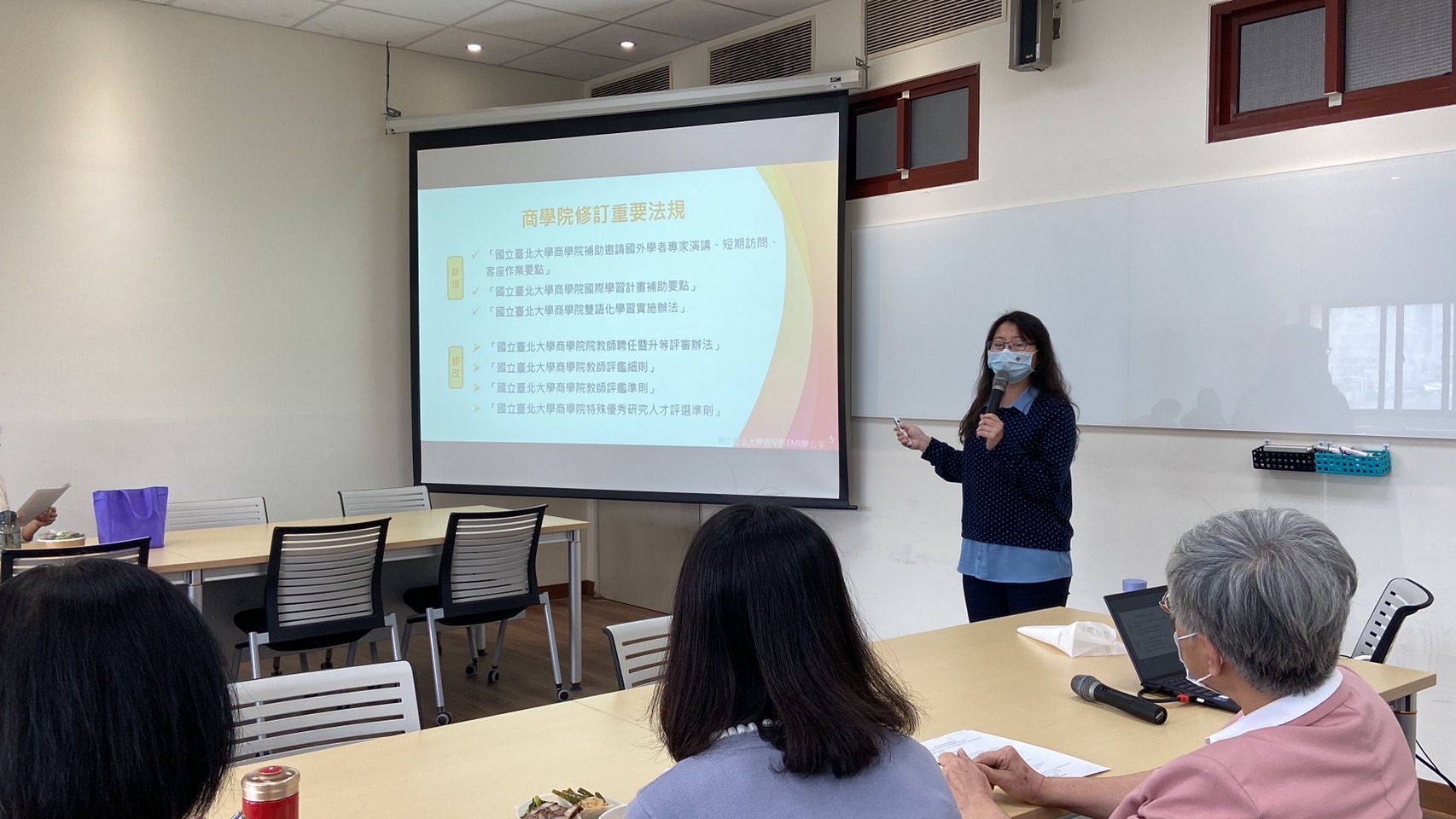 | 2022/02/24 金融系系務會議 雙語化學習執行長於企管系務會議說明雙語計劃教師相關獎補助。 |