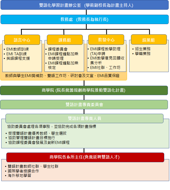 教育部表示,雙語化學習計畫,主要以「強化學生英語力,推動全英語授課(English as a Medium of Instruction,即EMI),整體提升高教國際競爭力」為願景,並分「重點培育計畫」(分學校型及學院型兩類)及「普及提升計畫」兩大主軸推動,計畫以2021年至2030年為期,分兩期推動,每期五年。第一期經公開徵件,重點培育學校計有18校申請,重點培育學院計35校76個學院提出申請,普及學校計52校提出申請。經教育部邀集國內外EMI專家學者共同組成審議小組進行專業審議,並考量經費額度後,核定第一期補助名單。